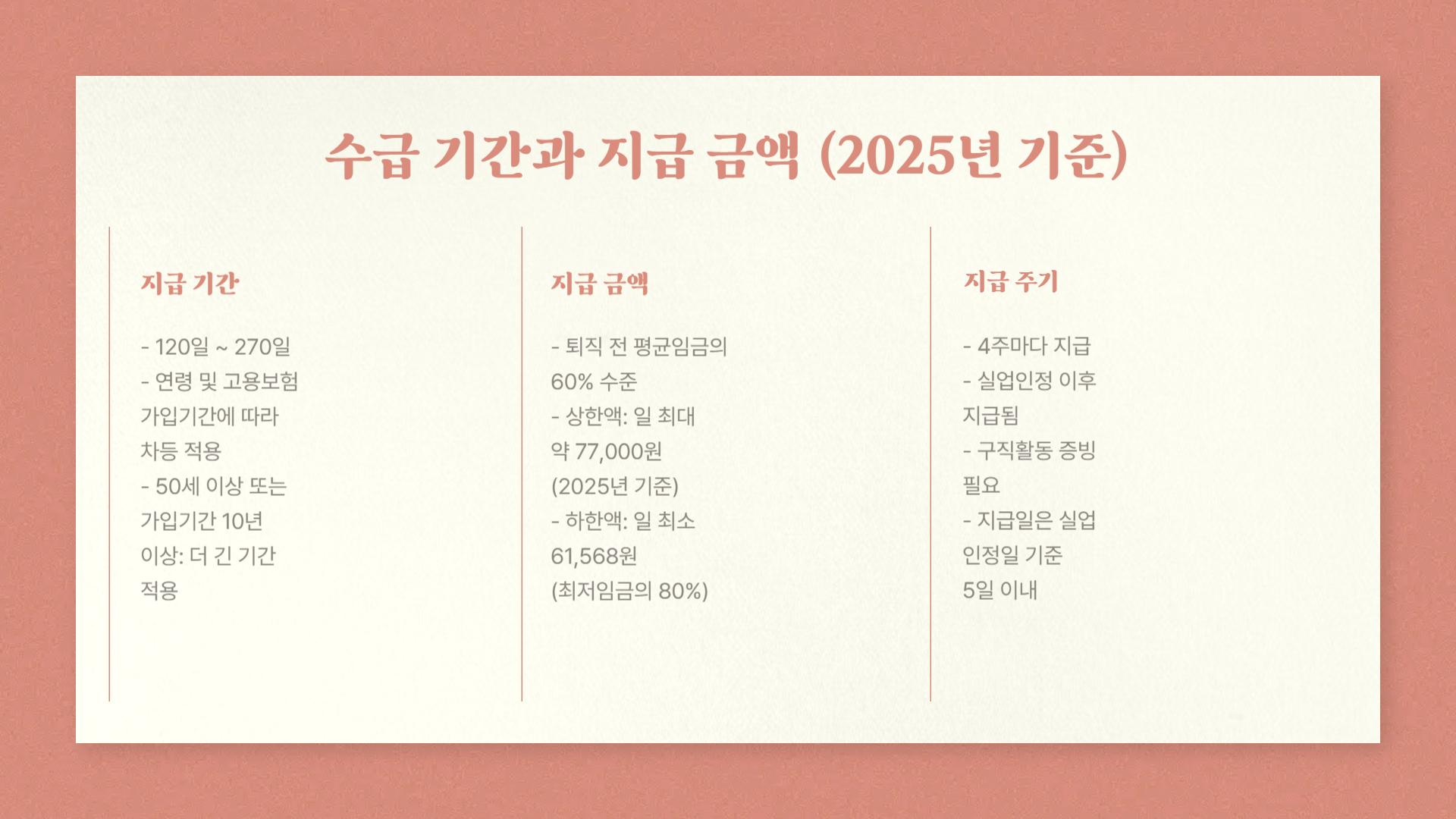 수급 기간과 지급 금액 (2025년 기준)