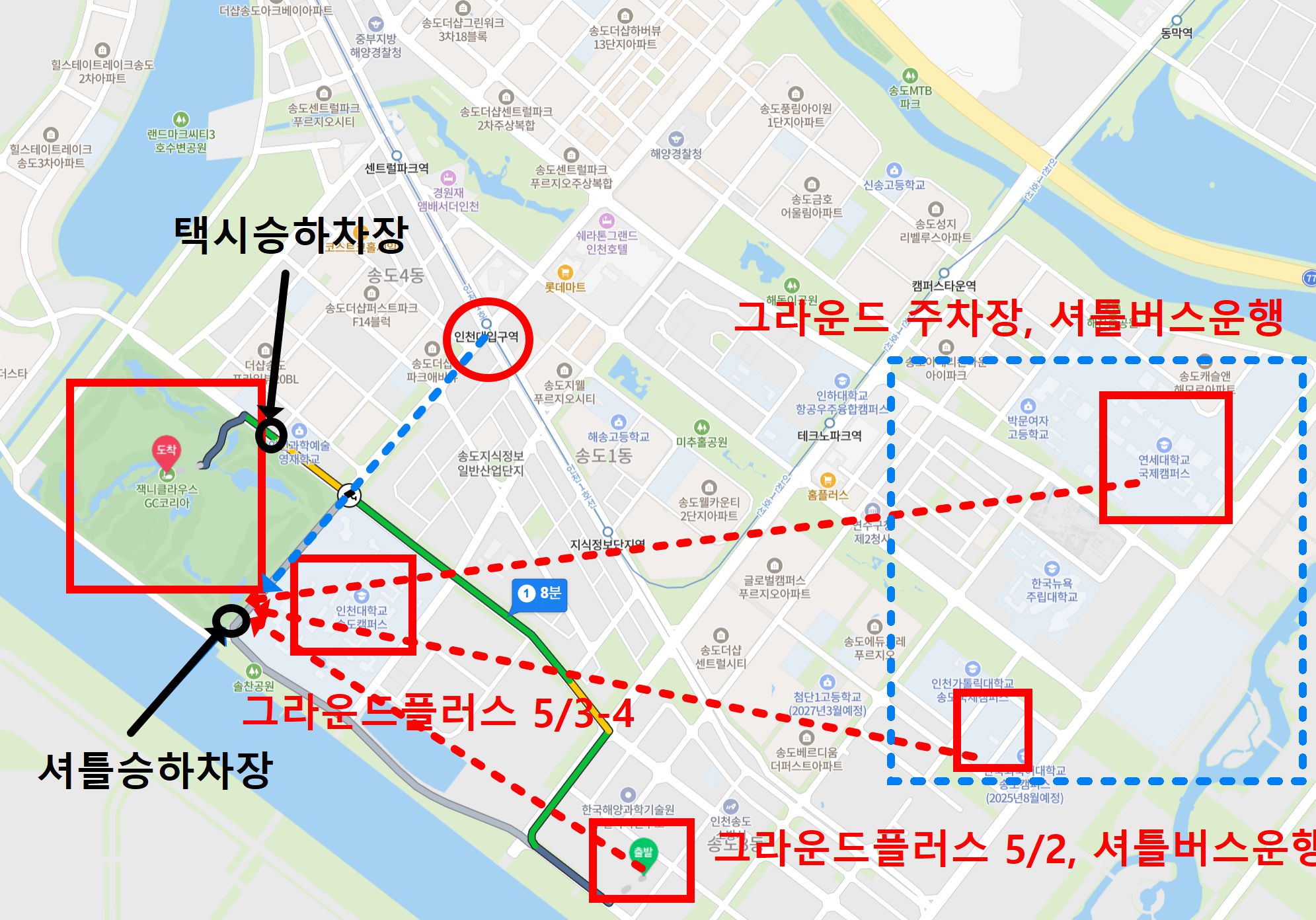 그라운드 플러스 주차장은 5월2일(셔틀운행)과 5월 3-4일(보행가능) 위치가 다릅니다.