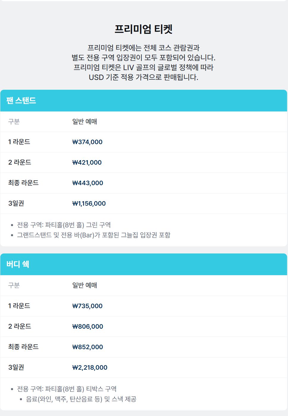 이번 LIV 골프 코리아는 단순한 골프 대회를 넘어, 팬 빌리지, 콘서트, 다양한 즐길 거리가 함께하는 새로운 경험의 장이 될 예정입니다.